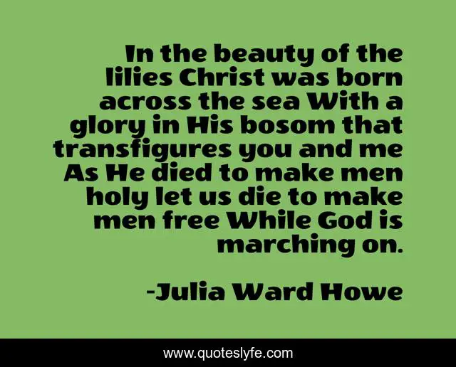 "Julia Ward Howe Quotes." Quoteslyfe.com, 2025. Sat. 06 Dec. 2025. <https://www.quoteslyfe.com/quote/In-the-beauty-of-the-lilies-Christ-262542>.