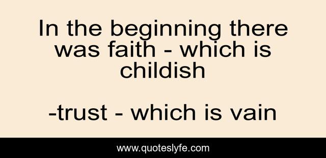 This page presents the quote "In the beginning there was faith - which is childish". Author of this quote is trust - which is vain. .
