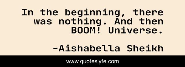 "Aishabella Sheikh Quotes." Quoteslyfe.com, 2025. Fri. 05 Dec. 2025. <https://www.quoteslyfe.com/quote/In-the-beginning-there-was-nothing-And-169642>.