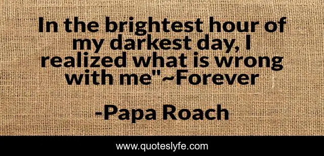 This page presents the quote "In the brightest hour of my darkest day, I realized what is wrong with me"~Forever". Author of this quote is Papa Roach. .