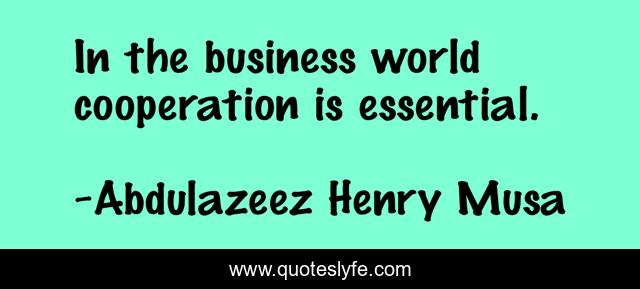 This page presents the quote "In the business world cooperation is essential.". Author of this quote is Abdulazeez Henry Musa. .