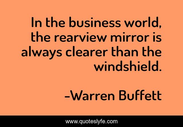 This page presents the quote "In the business world, the rearview mirror is always clearer than the windshield.". Author of this quote is Warren Buffett. This quote is about always, mirror, world,.