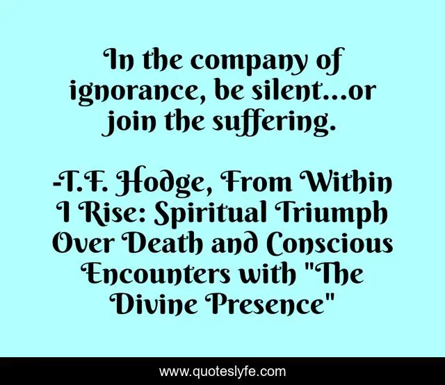 "T.F. Hodge, From Within I Rise: Spiritual Triumph Over Death and Conscious Encounters with "The Divine Presence" Quotes." Quoteslyfe.com, 2025. Fri. 05 Dec. 2025. <https://www.quoteslyfe.com/quote/In-the-company-of-ignorance-be-silent-211879>.