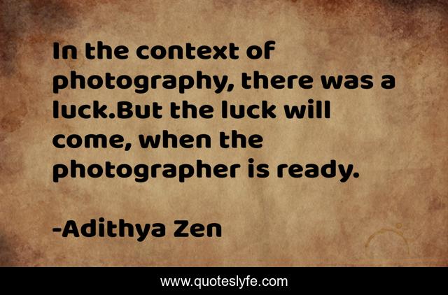 This page presents the quote "In the context of photography, there was a luck.But the luck will come, when the photographer is ready.". Author of this quote is Adithya Zen. .
