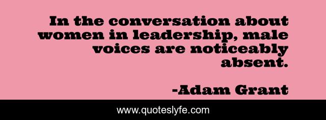 This page presents the quote "In the conversation about women in leadership, male voices are noticeably absent.". Author of this quote is Adam Grant. This quote is about conversation, women, voices,.