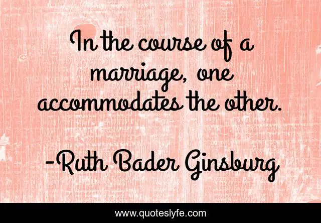 This page presents the quote "In the course of a marriage, one accommodates the other.". Author of this quote is Ruth Bader Ginsburg. .