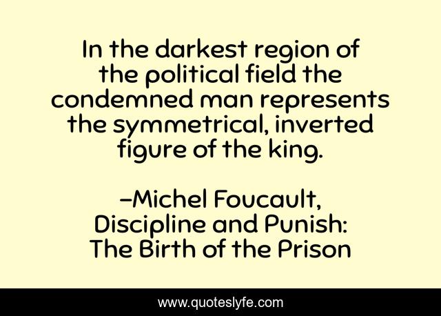 "Michel Foucault, Discipline and Punish: The Birth of the Prison Quotes." Quoteslyfe.com, 2025. Sat. 06 Dec. 2025. <https://www.quoteslyfe.com/quote/In-the-darkest-region-of-the-political-193509>.