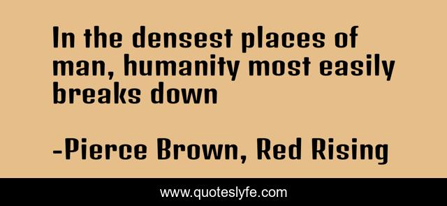 This page presents the quote "In the densest places of man, humanity most easily breaks down". Author of this quote is Pierce Brown, Red Rising. .