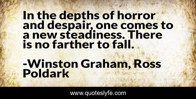This page presents the quote "In the depths of horror and despair, one comes to a new steadiness. There is no farther to fall.". Author of this quote is Winston Graham, Ross Poldark. This quote is about enthusiasm, life, despair, steadiness, inspirational,.