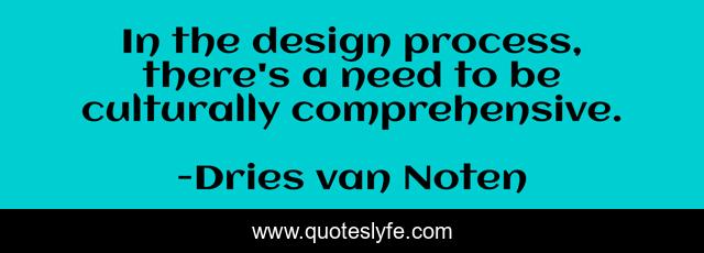 This page presents the quote "In the design process, there's a need to be culturally comprehensive.". Author of this quote is Dries van Noten. This quote is about process, need, comprehensive,.