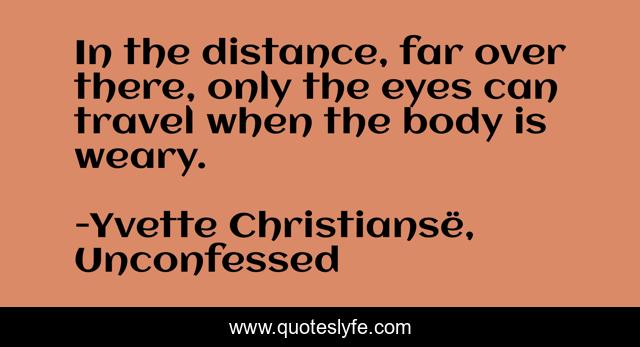 This page presents the quote "In the distance, far over there, only the eyes can travel when the body is weary.". Author of this quote is Yvette Christiansë, Unconfessed. This quote is about longing, body-and-mind,.