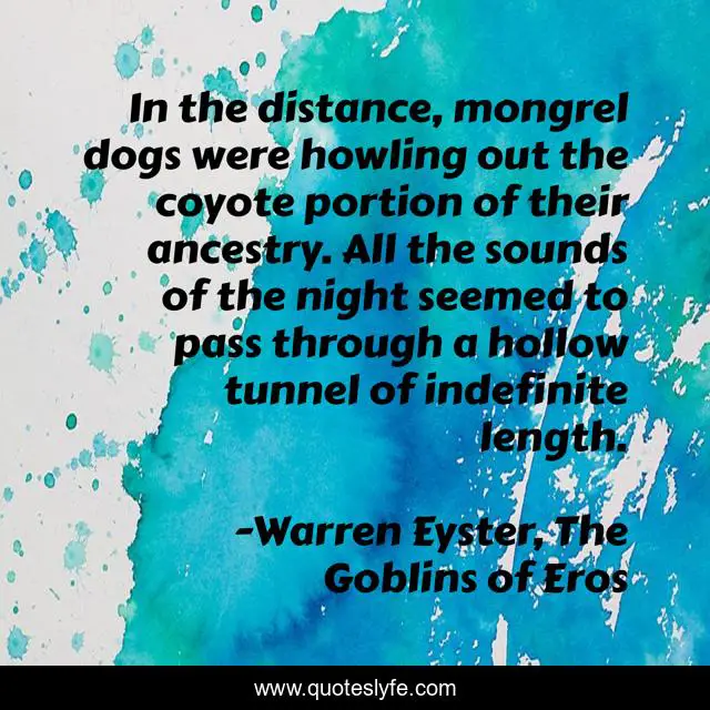 "Warren Eyster, The Goblins of Eros Quotes." Quoteslyfe.com, 2025. Tue. 09 Dec. 2025. <https://www.quoteslyfe.com/quote/In-the-distance-mongrel-dogs-were-howling-229542>.