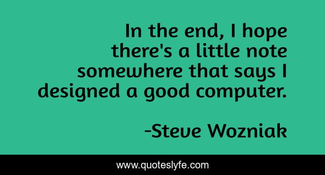 This page presents the quote "In the end, I hope there's a little note somewhere that says I designed a good computer.". Author of this quote is Steve Wozniak. This quote is about design, good, end,.