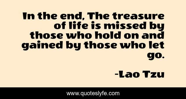 This page presents the quote "In the end, The treasure of life is missed by those who hold on and gained by those who let go.". Author of this quote is Lao Tzu. .