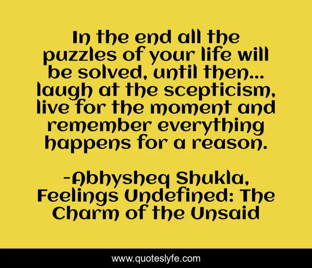"Abhysheq Shukla, Feelings Undefined: The Charm of the Unsaid Quotes." Quoteslyfe.com, 2025. Fri. 05 Dec. 2025. <https://www.quoteslyfe.com/quote/In-the-end-all-the-puzzles-of-34095>.