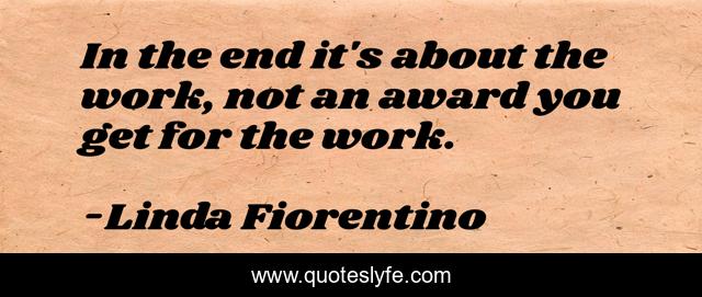 This page presents the quote "In the end it's about the work, not an award you get for the work.". Author of this quote is Linda Fiorentino. This quote is about end, award,.