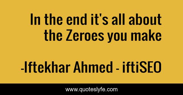 This page presents the quote "In the end it's all about the Zeroes you make". Author of this quote is Iftekhar Ahmed - iftiSEO. This quote is about seo, marketing, startup, business, money,.