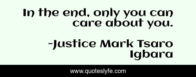 This page presents the quote "In the end, only you can care about you.". Author of this quote is Justice Mark Tsaro Igbara. This quote is about self-love, care, self-worth,.
