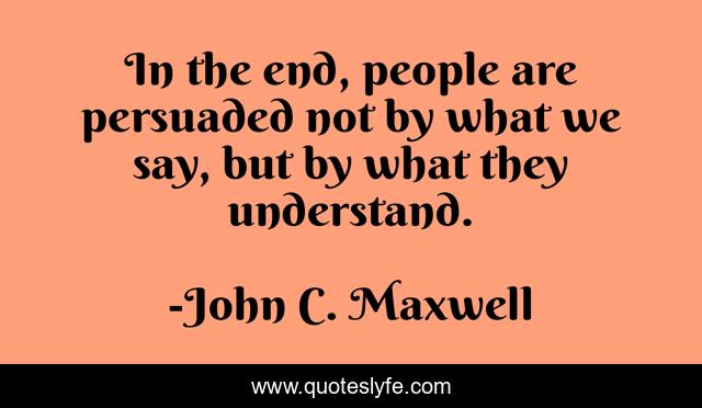This page presents the quote "In the end, people are persuaded not by what we say, but by what they understand.". Author of this quote is John C. Maxwell. This quote is about end, understand, people,.