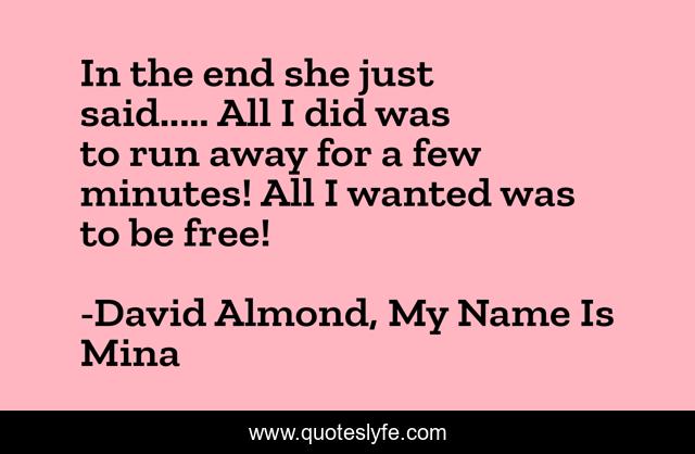 This page presents the quote "In the end she just said..... All I did was to run away for a few minutes! All I wanted was to be free!". Author of this quote is David Almond, My Name Is Mina. .