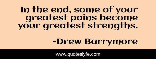 This page presents the quote "In the end, some of your greatest pains become your greatest strengths.". Author of this quote is Drew Barrymore. .