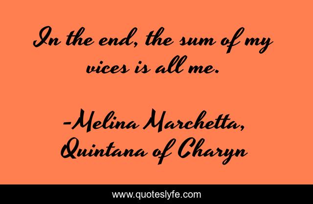 This page presents the quote "In the end, the sum of my vices is all me.". Author of this quote is Melina Marchetta, Quintana of Charyn. This quote is about responsibility, self-awareness,.
