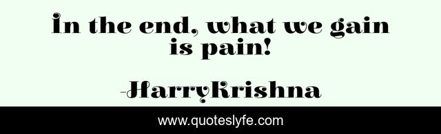 This page presents the quote "In the end, what we gain is pain!". Author of this quote is HarryKrishna. This quote is about life, relationship,.