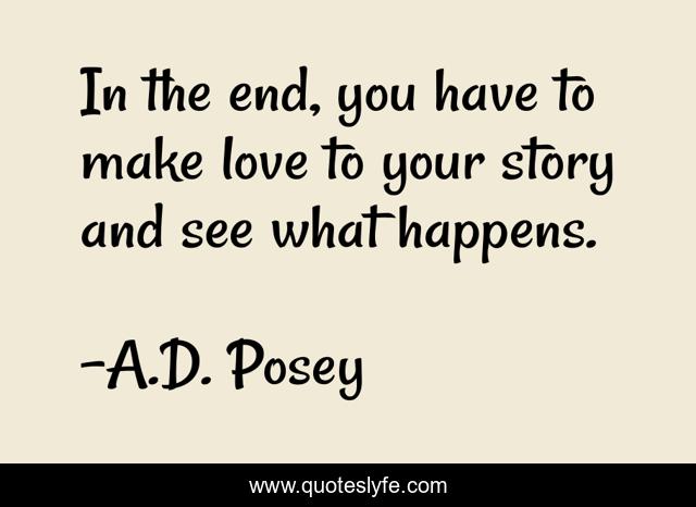This page presents the quote "In the end, you have to make love to your story and see what happens.". Author of this quote is A.D. Posey. This quote is about make-love, love, storytelling, storytellers, story, writing, write, writers, ad-posey,.