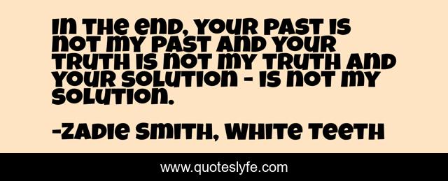 This page presents the quote "In the end, your past is not my past and your truth is not my truth and your solution - is not my solution.". Author of this quote is Zadie Smith, White Teeth. This quote is about past, solution, truth,.