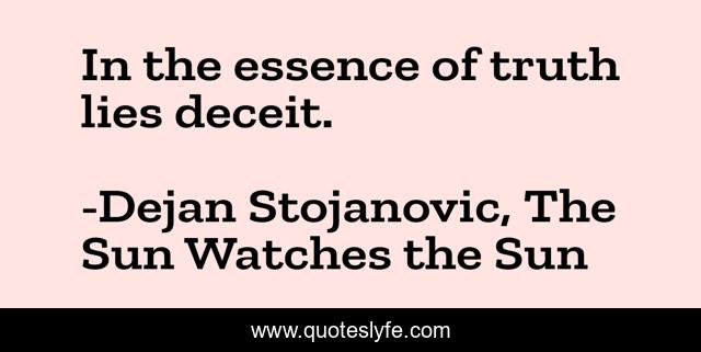 "Dejan Stojanovic, The Sun Watches the Sun Quotes." Quoteslyfe.com, 2025. Mon. 08 Dec. 2025. <https://www.quoteslyfe.com/quote/In-the-essence-of-truth-lies-deceit-10497>.