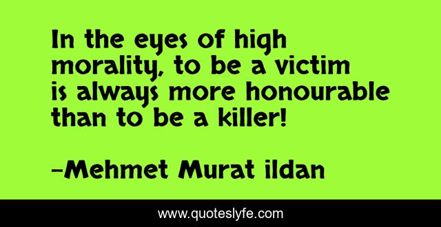This page presents the quote "In the eyes of high morality, to be a victim is always more honourable than to be a killer!". Author of this quote is Mehmet Murat ildan. .