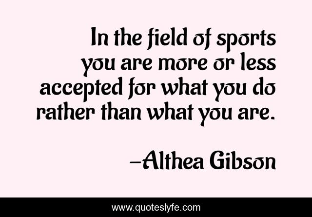 This page presents the quote "In the field of sports you are more or less accepted for what you do rather than what you are.". Author of this quote is Althea Gibson. .