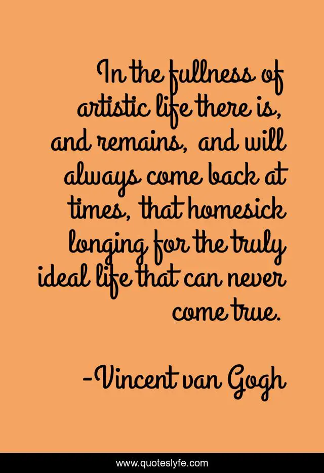 This page presents the quote "In the fullness of artistic life there is, and remains, and will always come back at times, that homesick longing for the truly ideal life that can never come true.". Author of this quote is Vincent van Gogh. .
