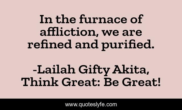 "Lailah Gifty Akita, Think Great: Be Great! Quotes." Quoteslyfe.com, 2025. Sat. 06 Dec. 2025. <https://www.quoteslyfe.com/quote/In-the-furnace-of-affliction-we-are-158696>.