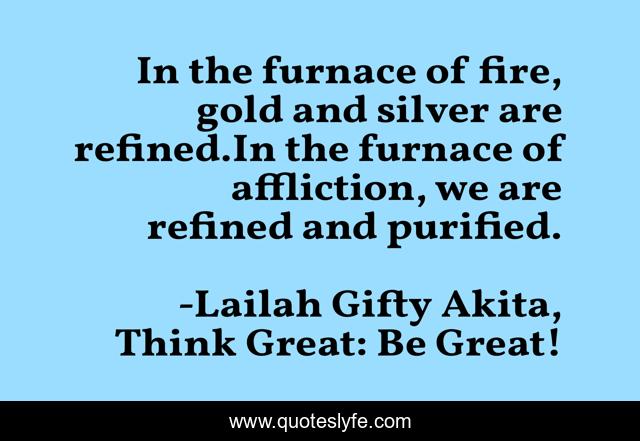 "Lailah Gifty Akita, Think Great: Be Great! Quotes." Quoteslyfe.com, 2025. Fri. 05 Dec. 2025. <https://www.quoteslyfe.com/quote/In-the-furnace-of-fire-gold-and-94868>.