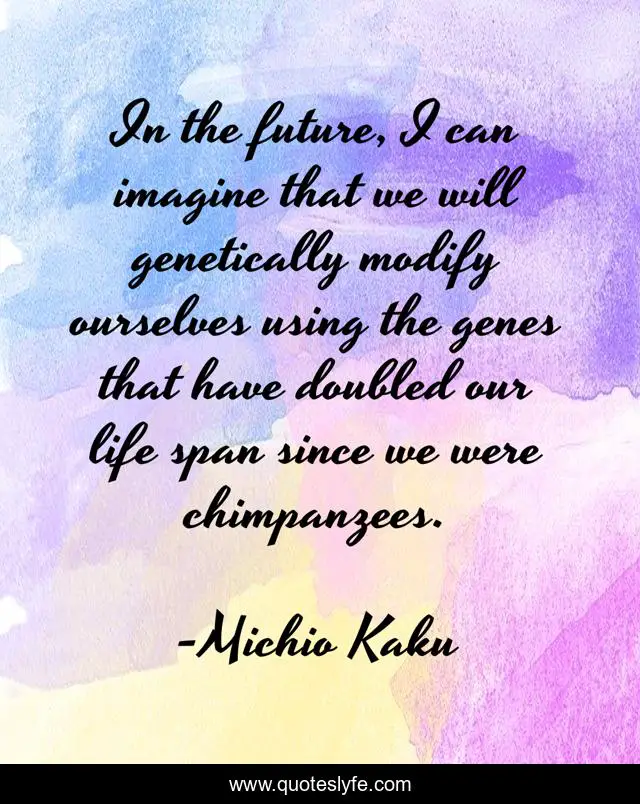 This page presents the quote "In the future, I can imagine that we will genetically modify ourselves using the genes that have doubled our life span since we were chimpanzees.". Author of this quote is Michio Kaku. This quote is about life, i can,.