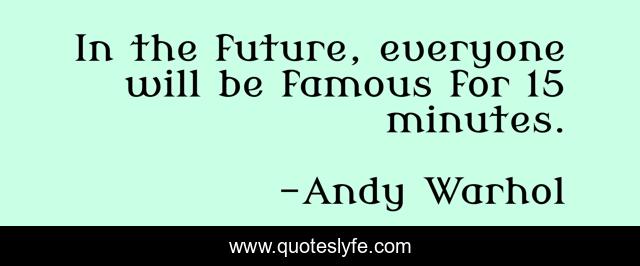 "Andy Warhol Quotes." Quoteslyfe.com, 2025. Mon. 08 Dec. 2025. <https://www.quoteslyfe.com/quote/In-the-future-everyone-will-be-famous-291400>.