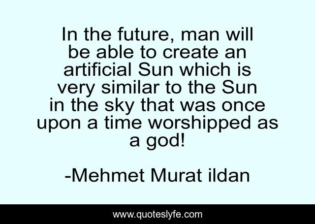 This page presents the quote "In the future, man will be able to create an artificial Sun which is very similar to the Sun in the sky that was once upon a time worshipped as a god!". Author of this quote is Mehmet Murat ildan. .