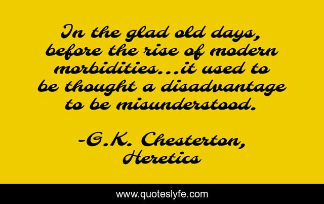 This page presents the quote "In the glad old days, before the rise of modern morbidities...it used to be thought a disadvantage to be misunderstood.". Author of this quote is G.K. Chesterton, Heretics. This quote is about modernism, writing,.