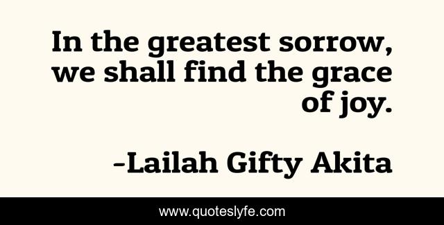 This page presents the quote "In the greatest sorrow, we shall find the grace of joy.". Author of this quote is Lailah Gifty Akita. This quote is about joy, sorrow, grace,.