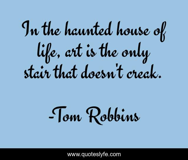 This page presents the quote "In the haunted house of life, art is the only stair that doesn't creak.". Author of this quote is Tom Robbins. This quote is about life, art,.