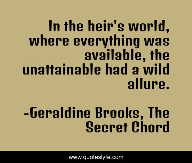"Geraldine Brooks, The Secret Chord Quotes." Quoteslyfe.com, 2025. Fri. 05 Dec. 2025. <https://www.quoteslyfe.com/quote/In-the-heir-s-world-where-everything-236578>.