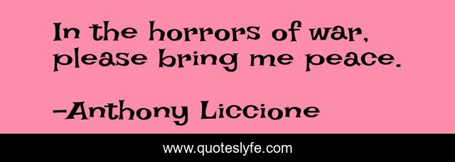 This page presents the quote "In the horrors of war, please bring me peace.". Author of this quote is Anthony Liccione. This quote is about mindfulness, tranquility, horror, peace, please, chaos, fighting, calmness, ugliness,.