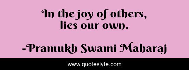 This page presents the quote "In the joy of others, lies our own.". Author of this quote is Pramukh Swami Maharaj. .