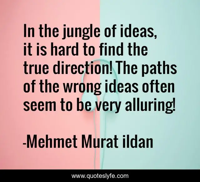 This page presents the quote "In the jungle of ideas, it is hard to find the true direction! The paths of the wrong ideas often seem to be very alluring!". Author of this quote is Mehmet Murat ildan. .