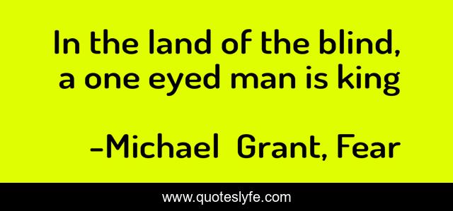 This page presents the quote "In the land of the blind, a one eyed man is king". Author of this quote is Michael Grant, Fear. .