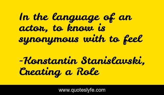 This page presents the quote "In the language of an actor, to know is synonymous with to feel". Author of this quote is Konstantin Stanislavski, Creating a Role. This quote is about drama, acting,.