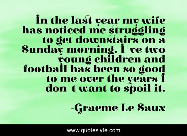 This page presents the quote "In the last year my wife has noticed me struggling to get downstairs on a Sunday morning. I've two young children and football has been so good to me over the years I don't want to spoil it.". Author of this quote is Graeme Le Saux. This quote is about good, children, football,.