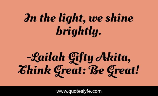 "Lailah Gifty Akita, Think Great: Be Great! Quotes." Quoteslyfe.com, 2025. Sat. 06 Dec. 2025. <https://www.quoteslyfe.com/quote/In-the-light-we-shine-brightly-118583>.