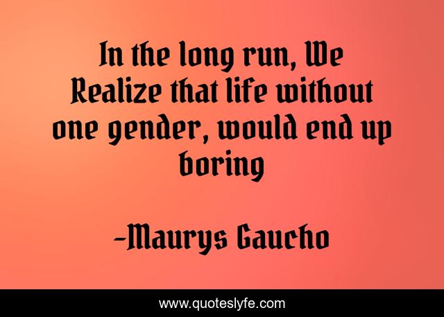 This page presents the quote "In the long run, We Realize that life without one gender, would end up boring". Author of this quote is Maurys Gaucho. This quote is about science, women, men, inspirational, enthusiasm,.